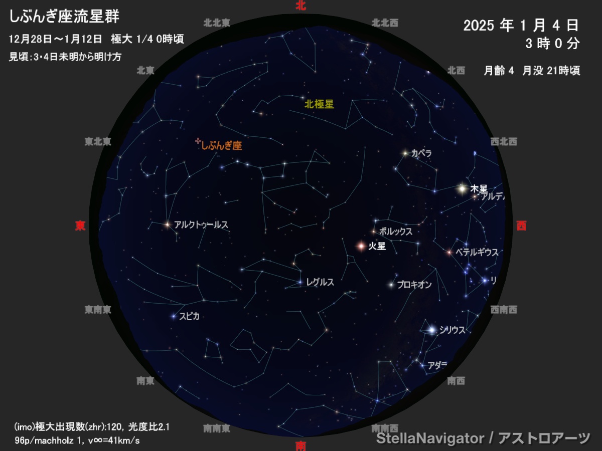 1/4(土) 00時 しぶんぎ座流星群が極大