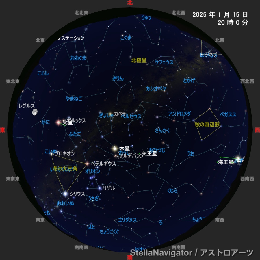 1/12(日) 22:37 火星と地球が最接近 0.64au、9608万㎞ 光度 -1.4等 視直径 14.6"