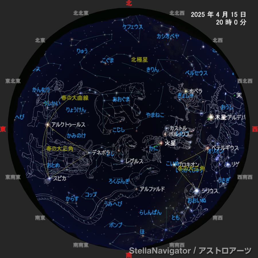 4/13(日)前後 火星がふたご座のカストル・ポルックスと並ぶ