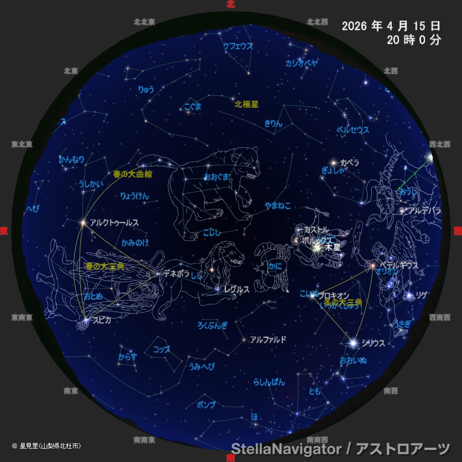 東の空からしし座、おおぐま座が昇ってきて春を告げています。
