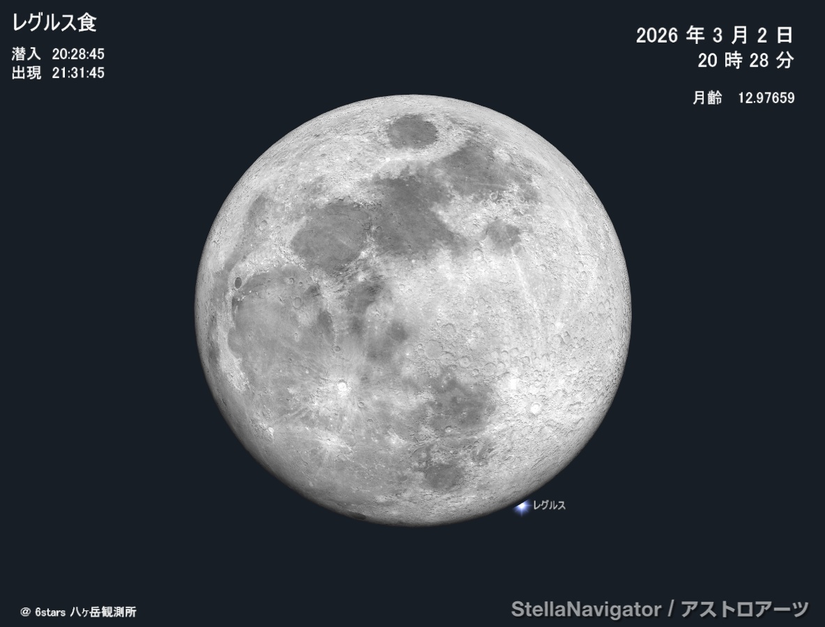 まだ冬の星座のオンパレードで、7つの一等星に木星が加わって冬の大三角・冬のダイヤモンドと輝く星空です。