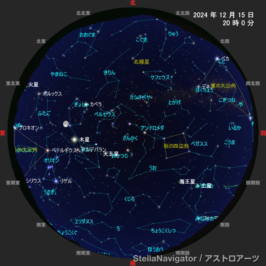 12/8(日) 7:24 木星が衝 光度 -2.8等 視直径 48".2