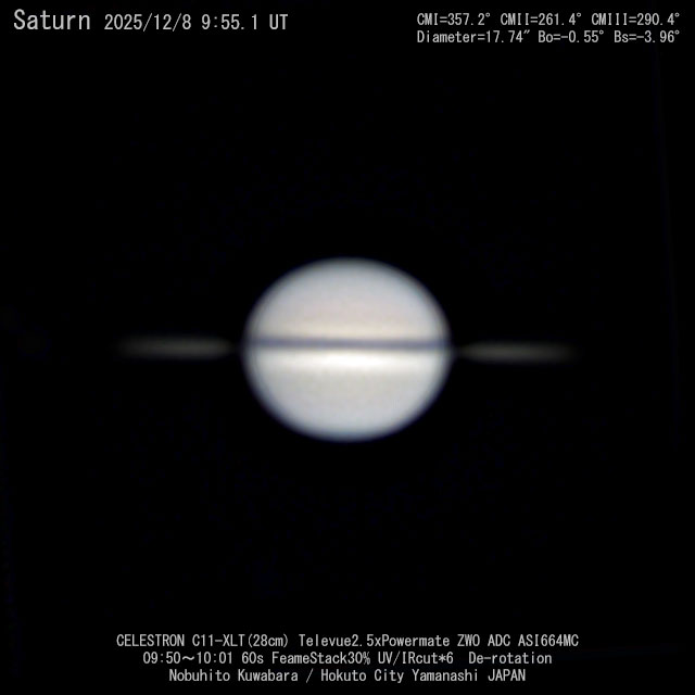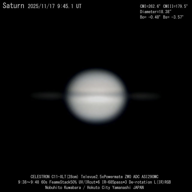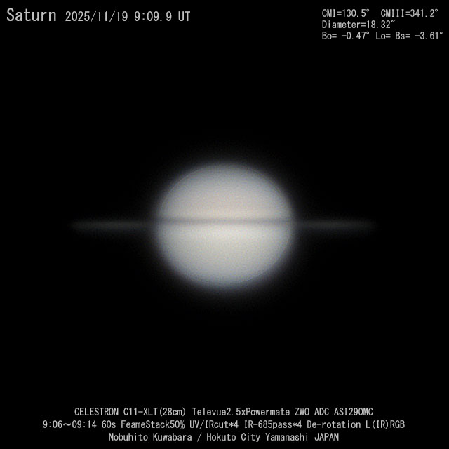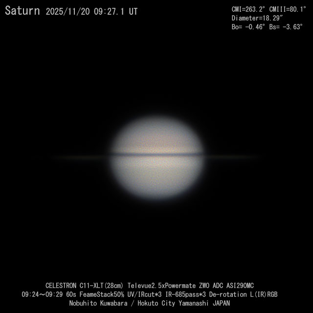2025年 衝 2025/9/22 3/24 環の消失 11/24 地球から見た輪の角度 -0.45°