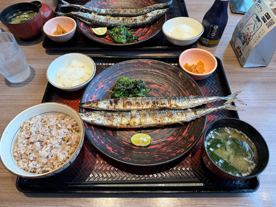昼食は大戸屋のサンマ定食を頂きました。1時過ぎに行ったので残り3セットで間に合いました。2匹で1,480円也、今シーズンも食べられました。