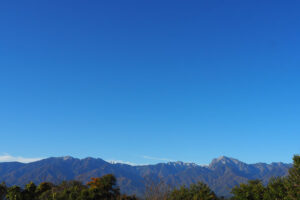今日の空。早朝はついにマイナス0.1℃になりました。南アルプス連峰も雪をかぶりました。