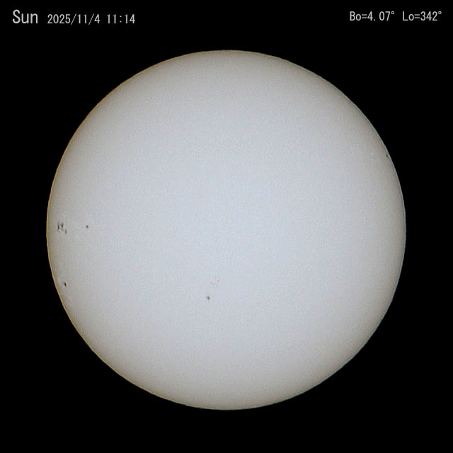 今日の太陽と月。太陽黒点は5群18個。月は明日(11/5 22時19分)に満月で本年度最大の満月で、スーパームーンとも呼ばれています。ちなみにネイティブアメリカンではビーバームーンです。