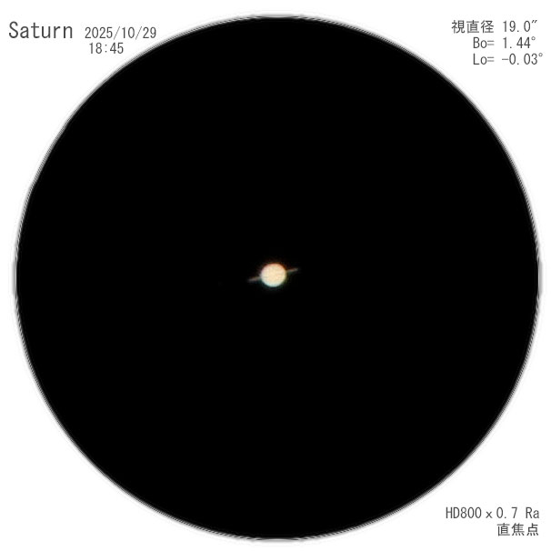 下の写真は10月29日に撮影した画像です。地球から見た輪の角度は1.44°でかなり細くなっていました。