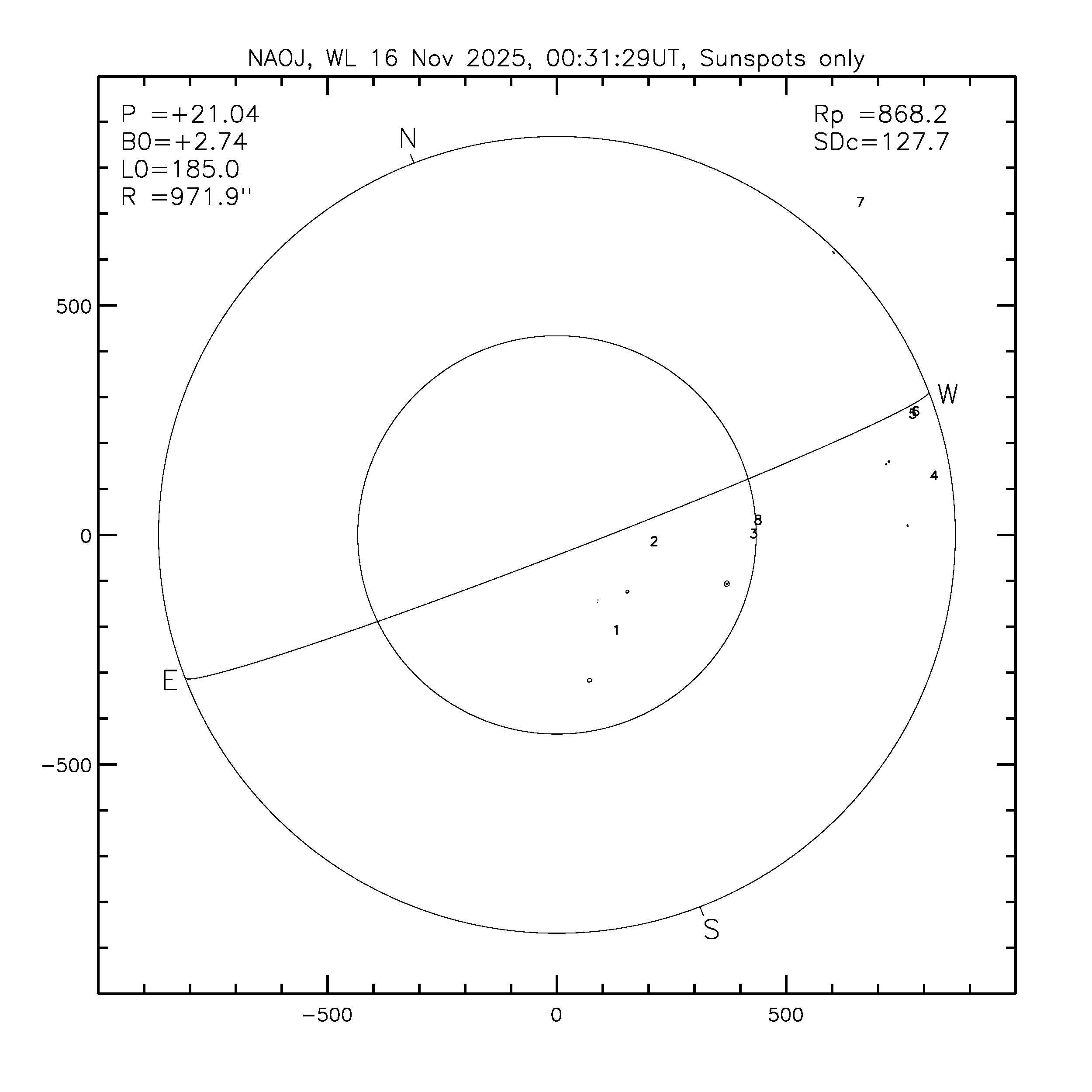 今日の太陽。黒点は6群8個で写真ではよくわかりませんのでNAOJ(国立天文台)の観察記録と比べてください。
