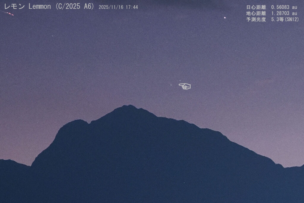 レモン彗星 Lemmon (C/2025 A6)は天文薄明終了前に沈んでいきます。もう最後かな・・次の回帰は1350年後です