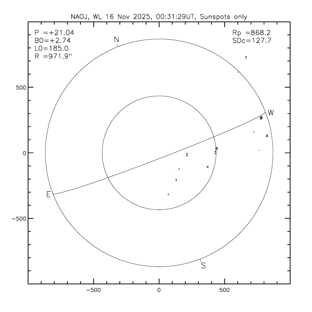 今日の太陽。黒点は6群8個で写真ではよくわかりませんのでNAOJ(国立天文台)の観察記録と比べてください。