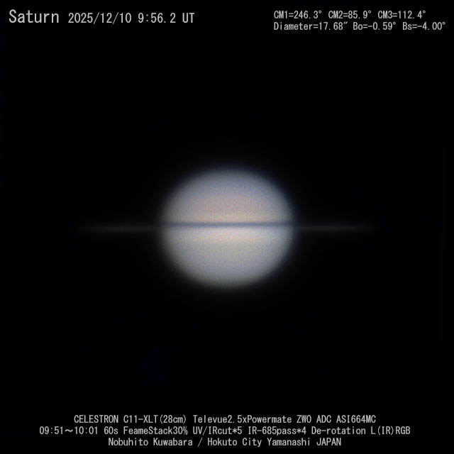 明日から天気が崩れるようなので、土星を撮影しておきました。相変わらず気流状態が悪いです。