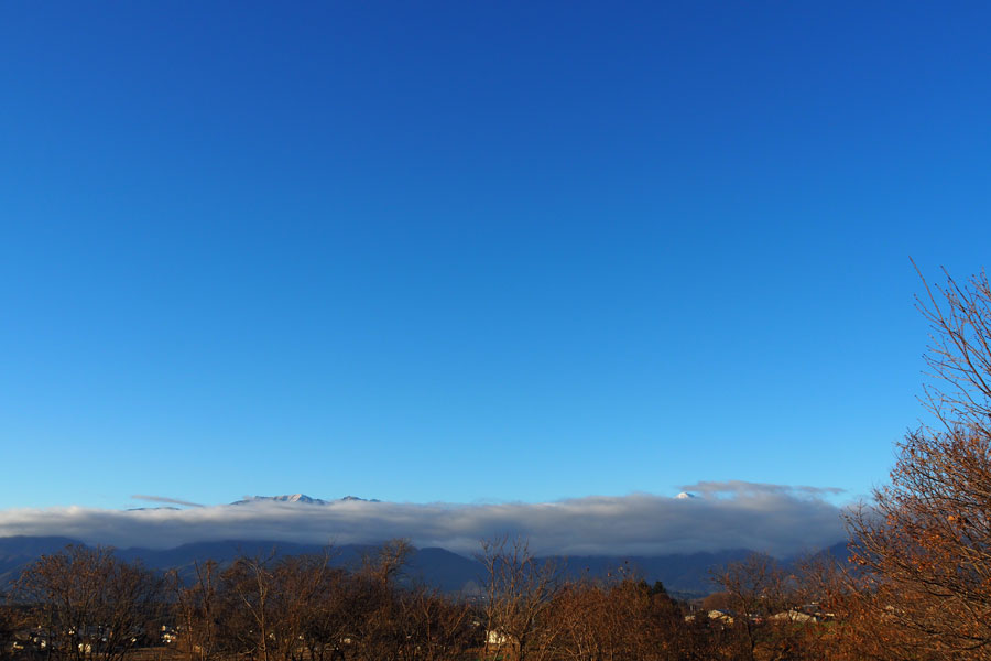 今日の空。山は雲がかかっていましたが雪は降っていなかったようです。