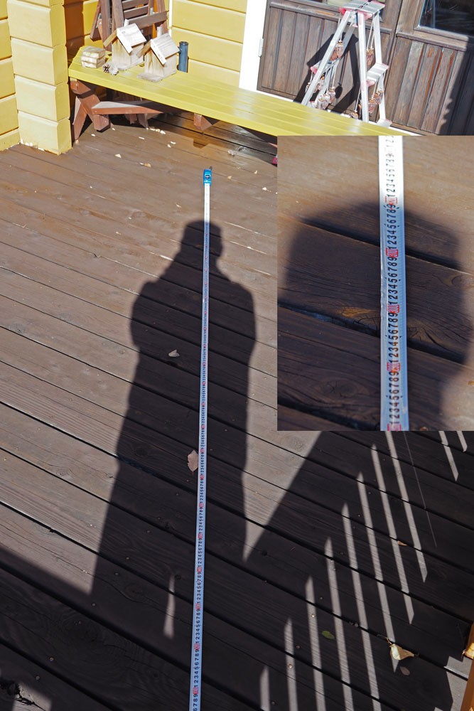 太陽の南中高度は30.1°位しか有りません。太陽の影は1.2mのポールに対して209㎝ぐらいです。