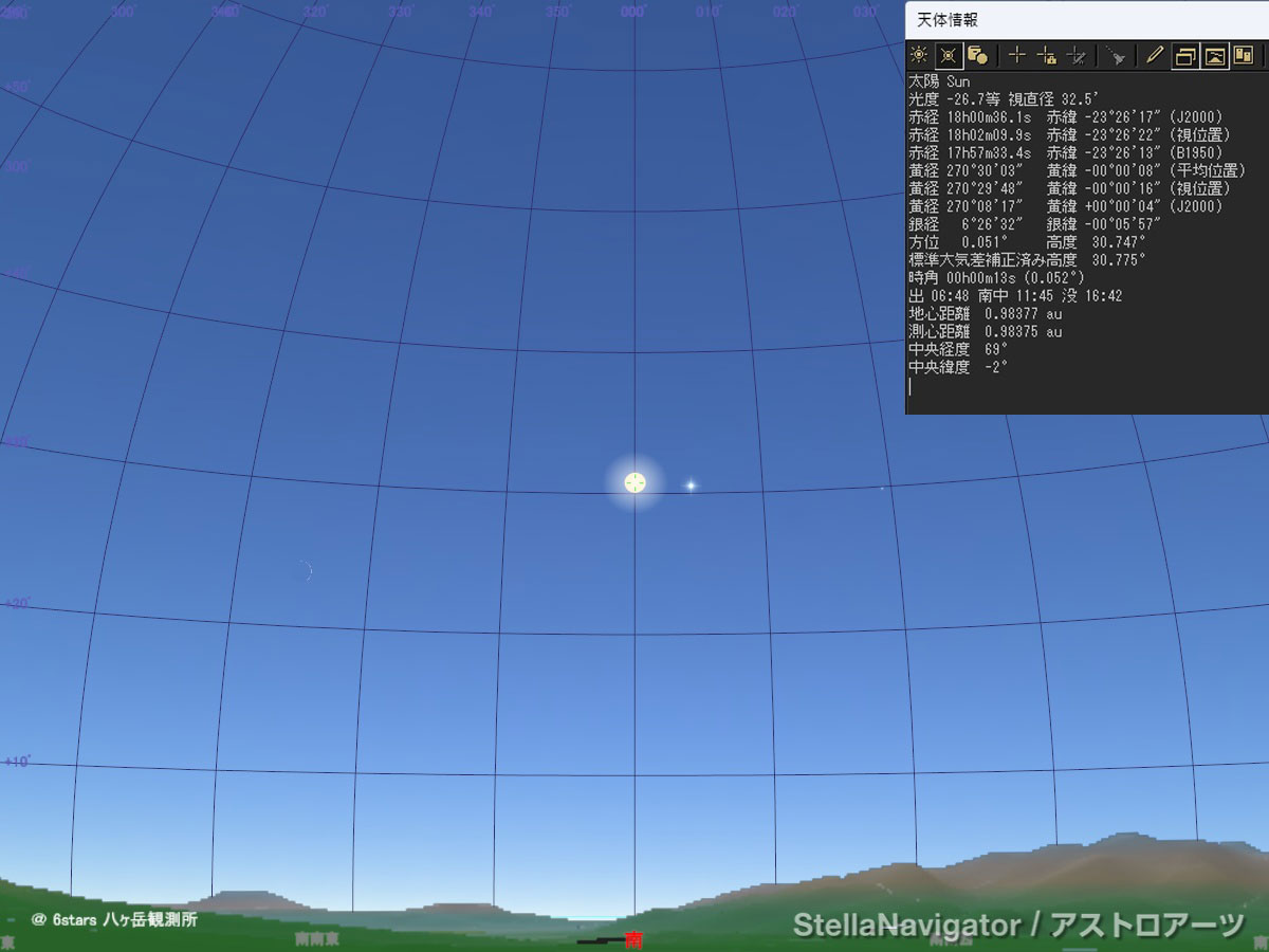 日の出は6:48・南中11:45・日の入り16:42で昼の時間が一番短くなりました。