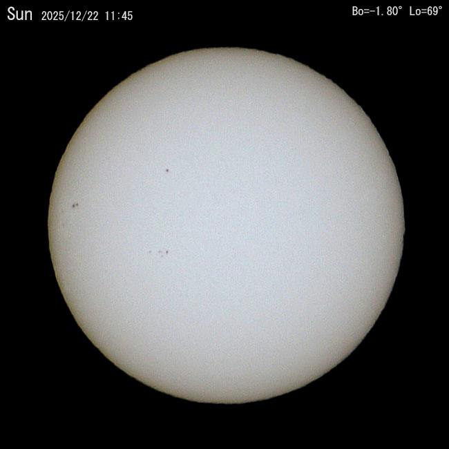 今日の太陽黒点は小さな黒点群が3つ見えます