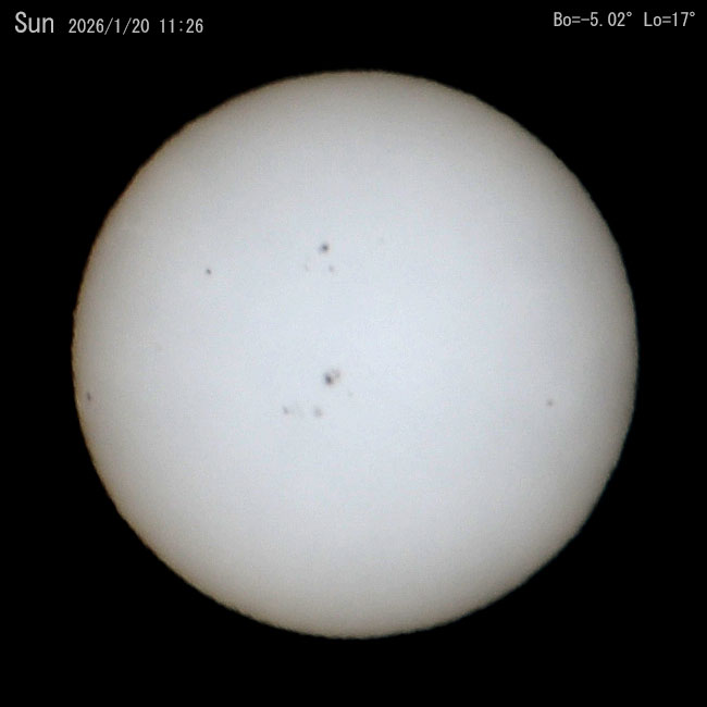 投稿日: 2026年1月20日2026年1月21日 投稿者: N.Kuwabara細い月 今日の朝は快晴に近かったですが昼頃から雲が出てきました。 気温は未明のが暖かい。日が暮れてからグッと冷え込みました。寒気団がやってきました。3~4日間は極寒でしょう。 極細の月が甲斐駒ヶ岳の上に見えました。月齢は1.5でした。明日は三日月で18時半過ぎに沈んでいくでしょう。 今日の太陽は薄雲の中。 👍いいね 0