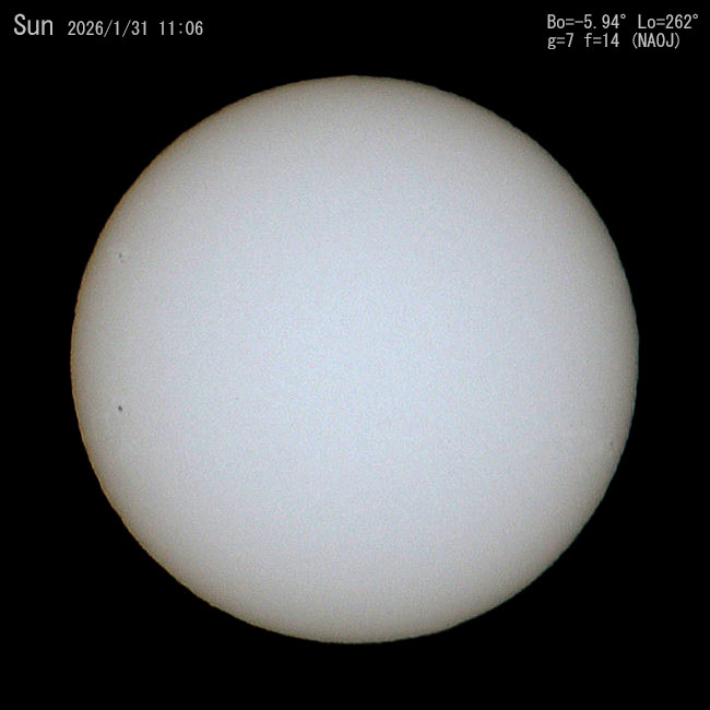 今日の太陽。中央付近に3群あるようですが写っていません。