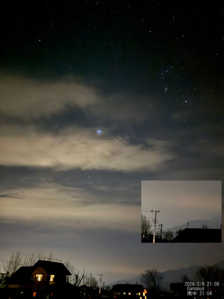 今晩のカノープス。雲が有って見えないかと思いましたが、写っていました。