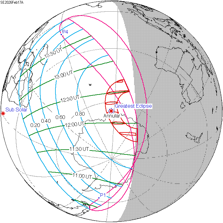 Solar eclipse of February 17, 2026 – Wikipediaより 金環日食見える地域