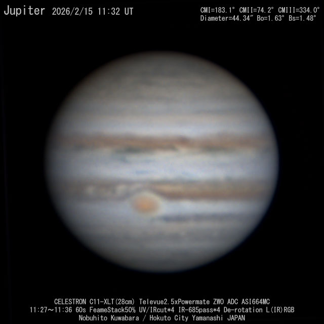 昨日(15日)木星。大赤斑が見えていたので出来栄えに期待しましたがまだまだ気流は安定しません。
