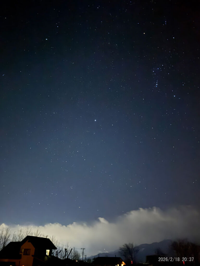 投稿日: 2026年2月18日2026年2月19日低空に雲がかかり彗星は見ることが出来ませんでした 今日の空。夕方から南西の低空に雲がかかり彗星は見ることが出来ませんでした。 今日の太陽。 今晩の南空の低空に雲がいっぱいです。カノープスの位置に光が・・・飛行機のようです。 👍いいね 1+