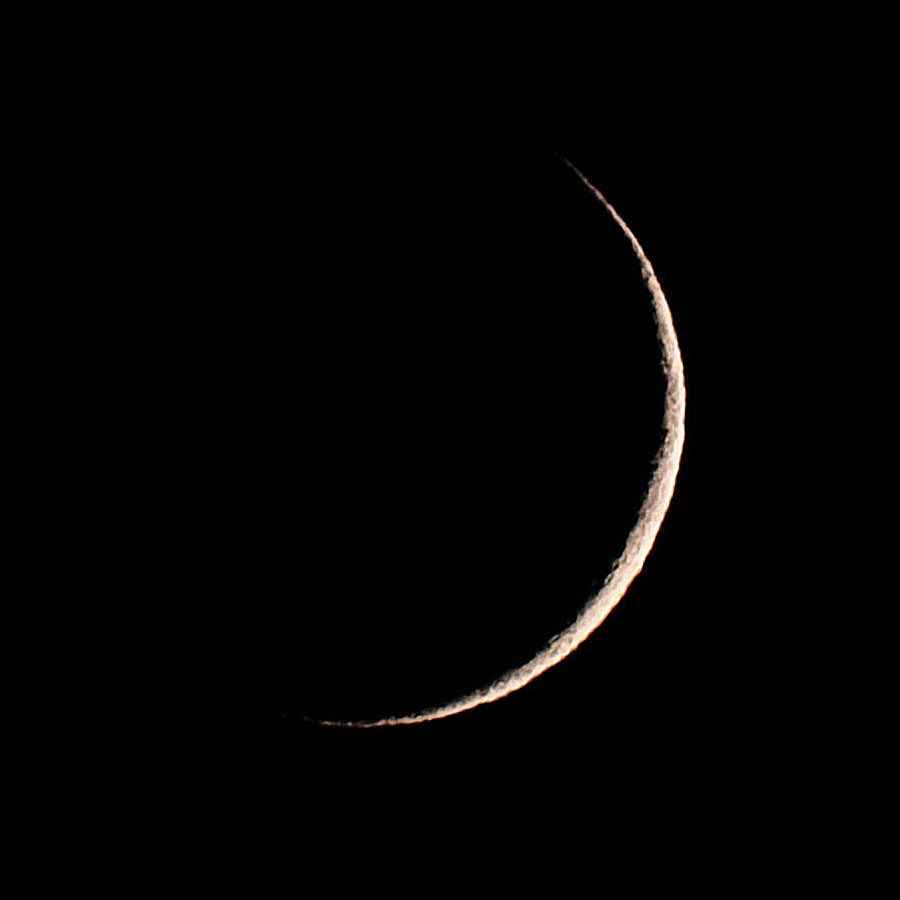 今夕の月は月齢1.9の三日月。下に金星、上に土星と並んでいるようですが、木陰で良く見えませんでした。