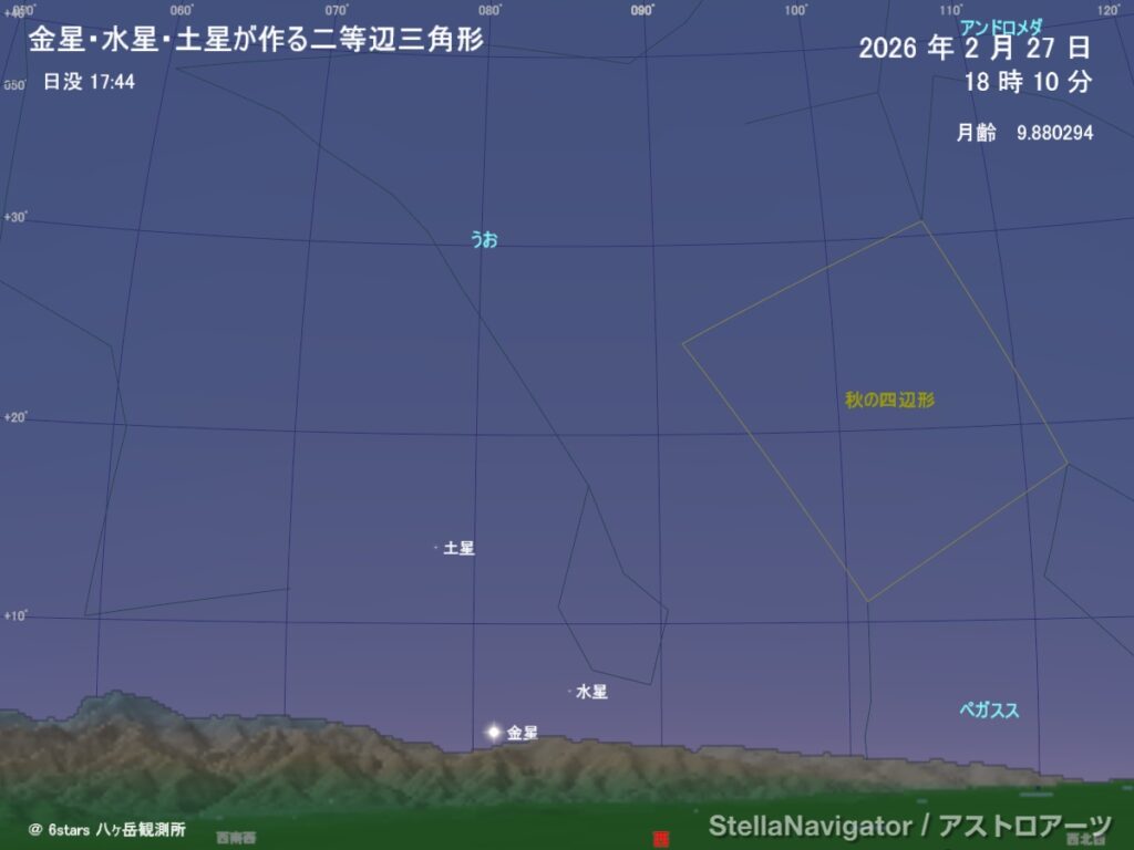 西の空で金星・水星・土星が集まっています。(昨日までの動き)