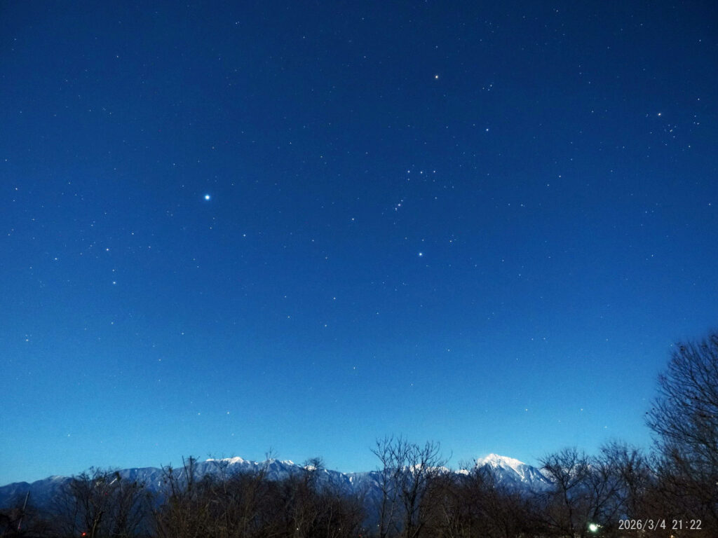 投稿日: 2026年3月4日2026年3月5日十六夜月が南アルプスを照らす 今日の空。朝まで雪が降ったので南アルプスは麓の方まで白くなっていました。 今日の太陽。黒点群が大体同じ緯度に並んでいます 今晩の夜空。冷たい風が吹き寒いですが、満月過ぎの十六夜月(いざよいづき)が南アルプスを照らしてきれいだったので撮影してみました。 👍いいね 0