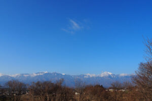 今日の空。今日も左中央あたりに月が見えています。今夜も雲多しでグッと冷えて氷点下です。