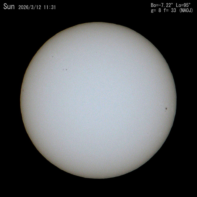 今日の太陽。左側に黒点群は5群あるようです。
