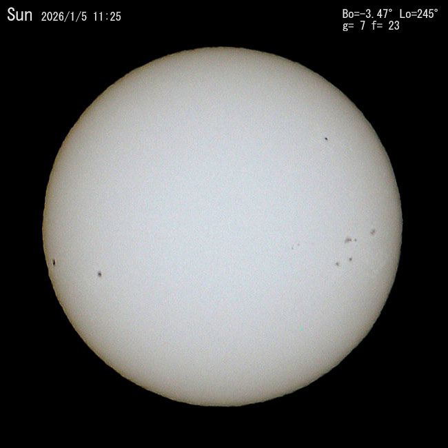 今日の太陽は左側から黒点が見えて来ました