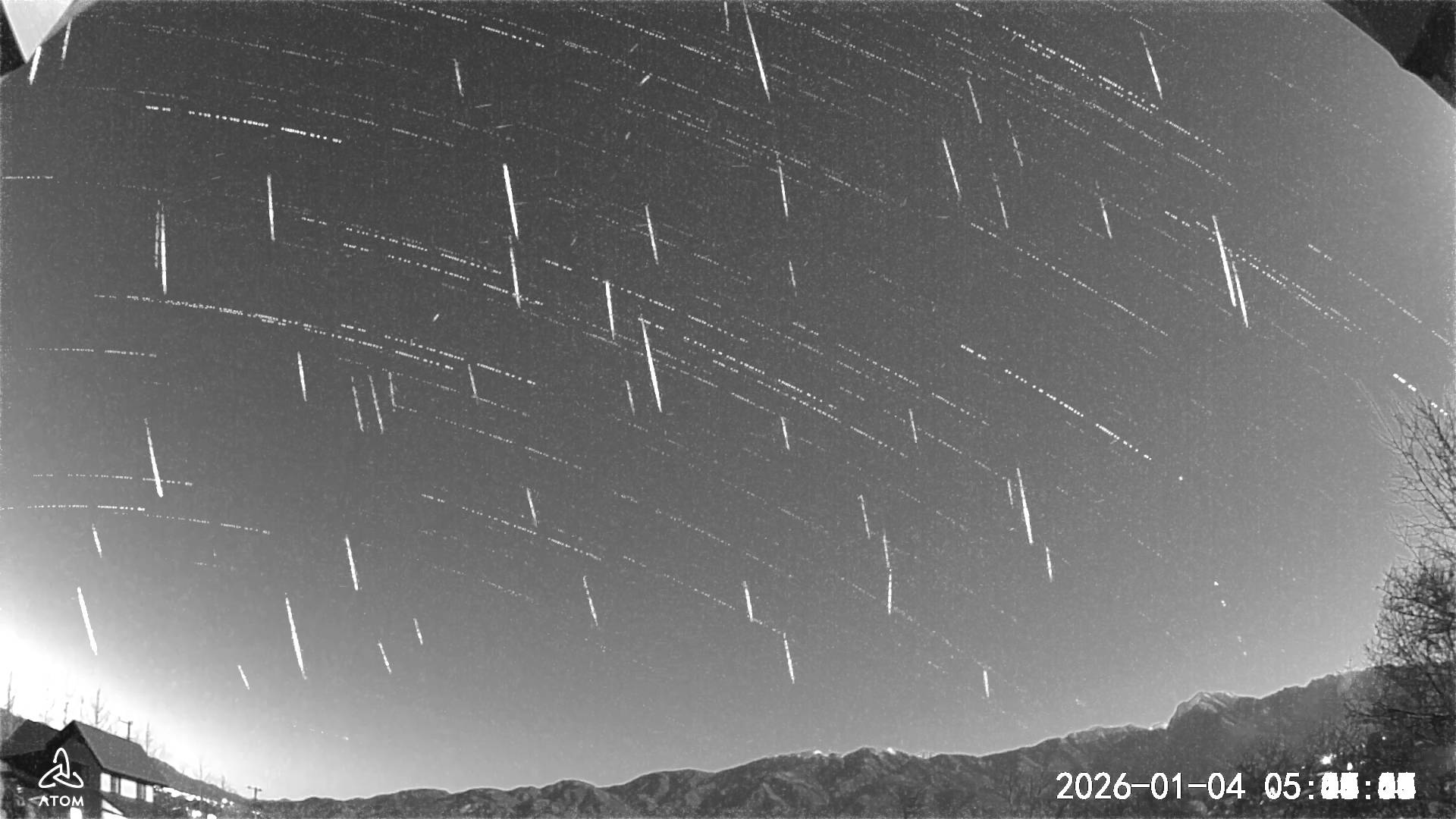 今年は満月の月が明るく流星が短く写っています。
